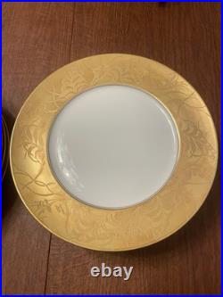 Beautiful set of ten (10) vintage Royal Chelsea “Golden Rose” English bone china plates, each measuring approximately 8.25 inches. This iconic mid-century pattern features lavish clusters of deep pink and yellow roses framed by a richly sponged heavy gold border, one of Royal Chelsea’s most sought-after designs. Perfect for collectors, display, afternoon tea, or elegant table settings. Condition: Excellent vintage condition with no chips, cracks, or repairs. Gold remains bright and intact. Minimal expected light use marks only. Quantity: 10 matching plates. Type: Salad / Luncheon Plates (Set of 10). Color: Multicolor with Heavy Gold. Design: Roses & Heavy Gold. Production Style: Art Pottery. Production Technique: Hand-Decorated, Gilded. Backstamp: Royal Chelsea Golden Rose England. Features: Heavy Gold Border; Floral Design; Vintage; Bone China; Set of 10.